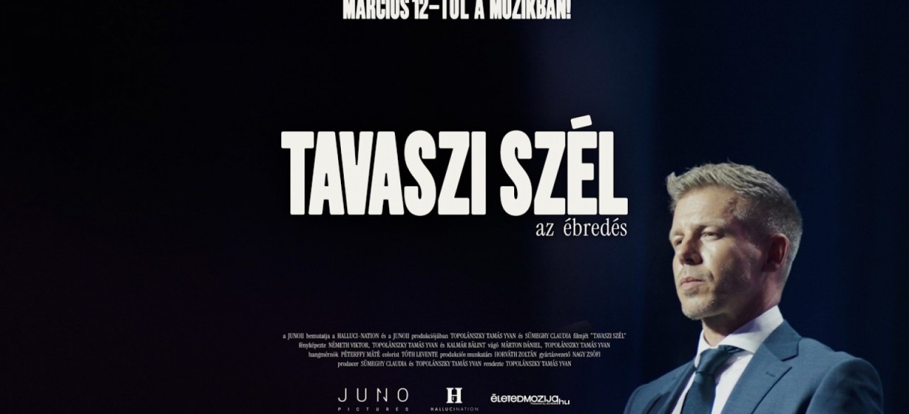 Március 12-én érkezik a mozikba Topolánszky Tamás Yvan TAVASZI SZÉL – az ébredés című független dokumentumfilmje. Az alkotók közleménye szerint több mint egy éven át kísérték Magyar Pétert és csapatát: országjárásokon, kampányhelyszíneken és háttérbeszélgetéseken, valamint a politikus közvetlen környezetében, az otthonában is forgattak. A filmet a JUNO11 Distribution forgalmazza.
